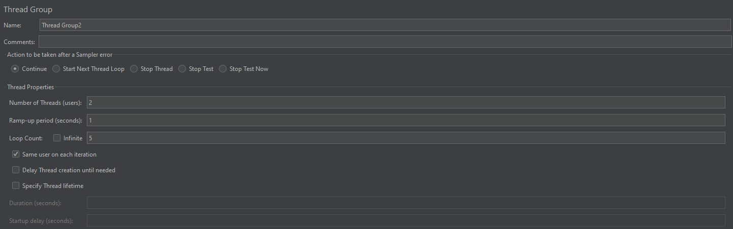 - Loop Count: 쓰레드의 반복 횟수를 의미합니다. 10이면 10번 반복합니다. Forever에 체크하면 무한 반복합니다.