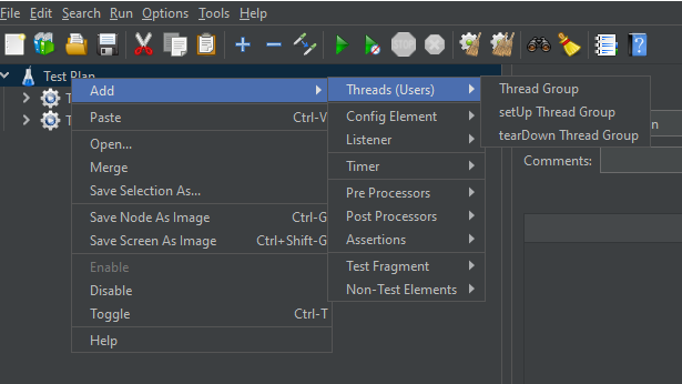 Test Plan을 우클릭 해서 Thread Group 을 추가해 줍니다.